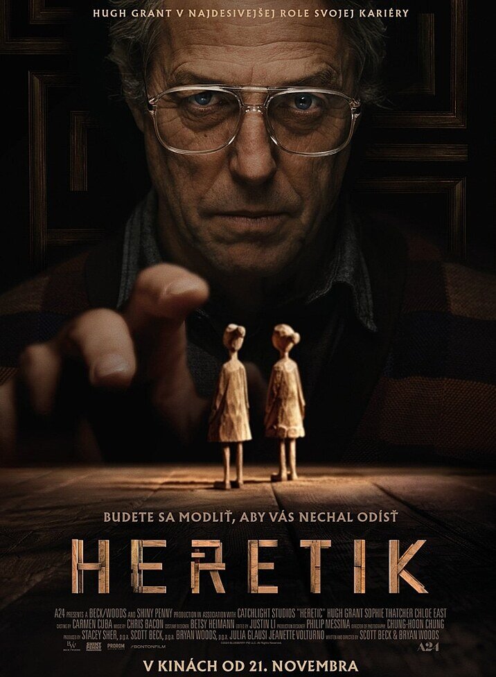 Hugh Grant v najdesivejšej role svojej kariéry. Budete sa modliť, aby vás nechal odísť. Potom, čo dve mormónske misionárky zazvonia pri dverách, ich šarmantný, presvedčivý a napokon diabolský pán Reed vtiahne do smrtiacej hry na mačku a myš a ony sú nútené dokázať svoju vieru. Film Heretik sa začína oplzlou výmenou názorov medzi sestrou Barnesovou (Sophie Thatcher), a sestrou Paxtonovou (Chloe East), mladými misionárkami, ktoré si oddýchli od zvonenia pri dverách a krstenia konvertitov na predmestí Colorada. Sestra Paxton je naivná a práve spoznáva tajomstvá kondómov Magnum, zatiaľ čo Barnes má za sebou ťažšie chvíle, keď si liečila rany po smrti svojho otca a vlastné skúsenosti takmer so smrťou. Podobne ako klamlivo pokojný dom na predmestí, ktorý má sestry na ich misii uväzniť, pôsobí na prvý pohľad neškodne a nenápadne aj hostiteľ pán Reed (Hugh Grant), keď počas daždivého popoludnia uvádza mladé návštevníčky do svojej svätyne. Až keď Reed zavedie Paxtonovú a Barnesovú do svojej knižnice a do pasce, ktorú na ne nastražil, odhalia jeho skutočnú povahu. S každou ďalšou miestnosťou, do ktorej dievčatá vstúpia, ich Reed a jeho dom konfrontujú s niečím, čo je čoraz bližšie peklu...